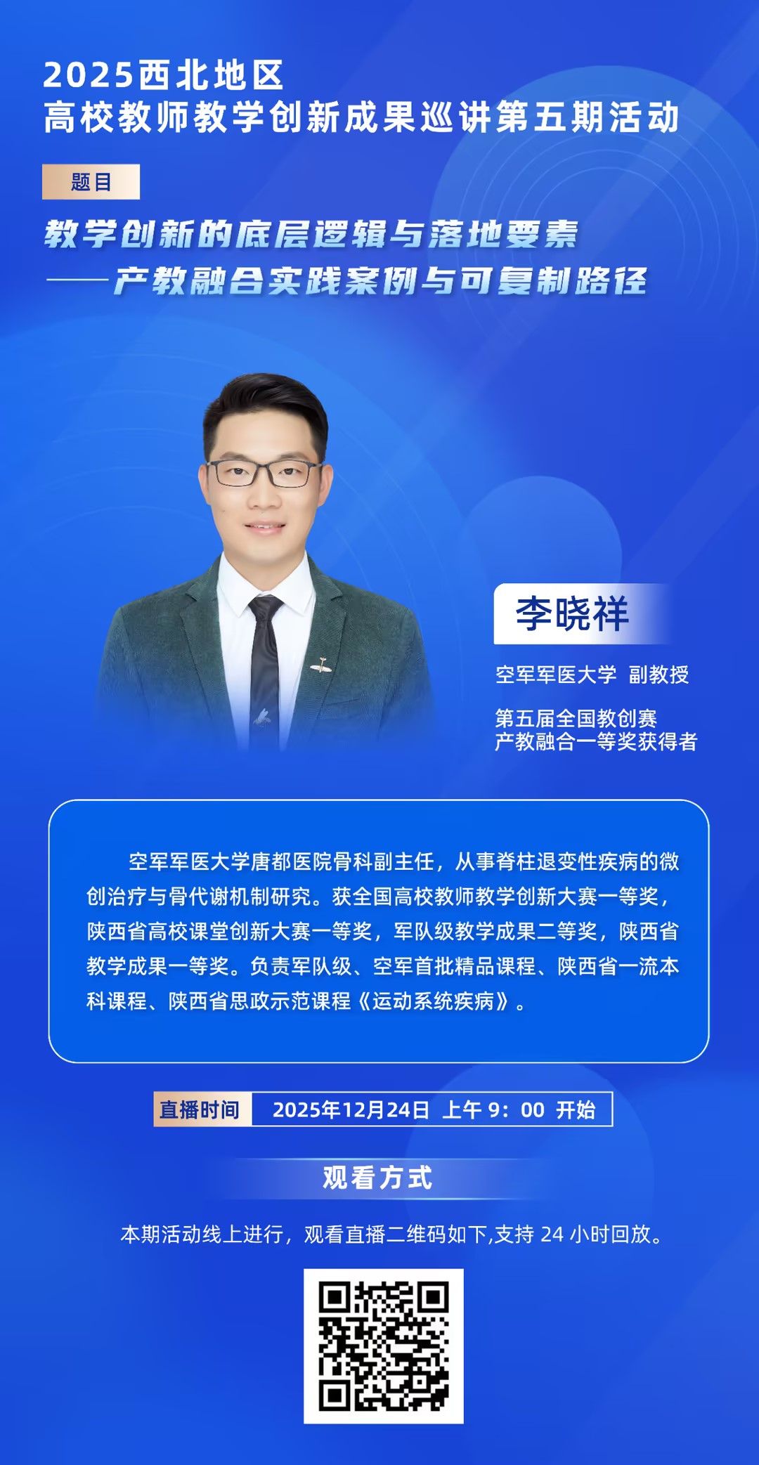 【校外】2025西北地区 高校教师教学创新成果巡讲第五期活动-教学创新的底层逻辑与落地要责 产教融合实践亲例与可复制路经(2025年12月22日)
